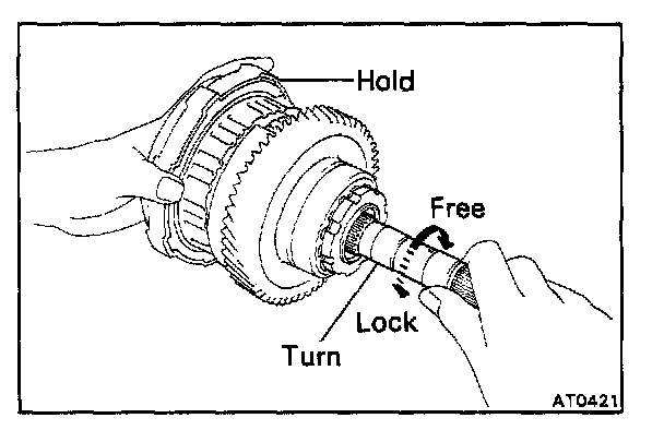 b. Hold the overdrive direct clutch and turn the intermediate shaft. The shaft should turn freely clockwise and should lock counterclockwise.