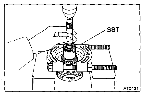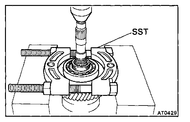 Using SST, press out the bearing from the shaft.
