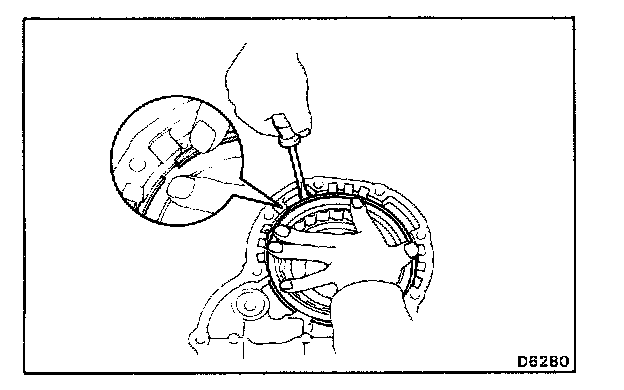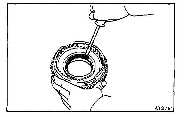 Be sure the end gap of the snap ring is not aligned with one of cutouts.