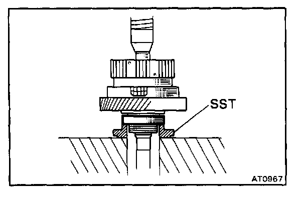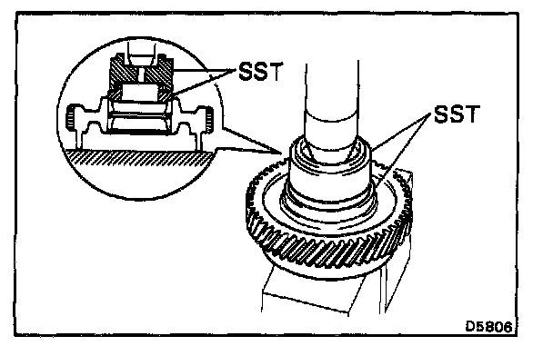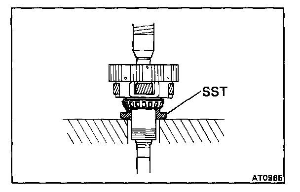 Using SST, press in the bearing until it slightly touches the front bearing of the counter drive gear.