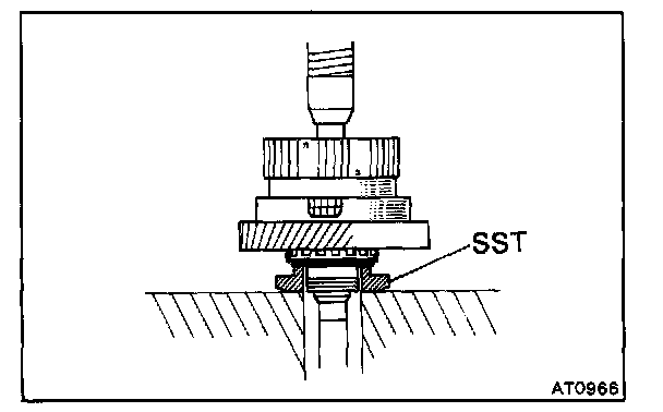 a. Place SST onto the adjusting nut and hold the shaft in a vise with soft jaws.