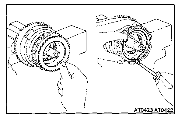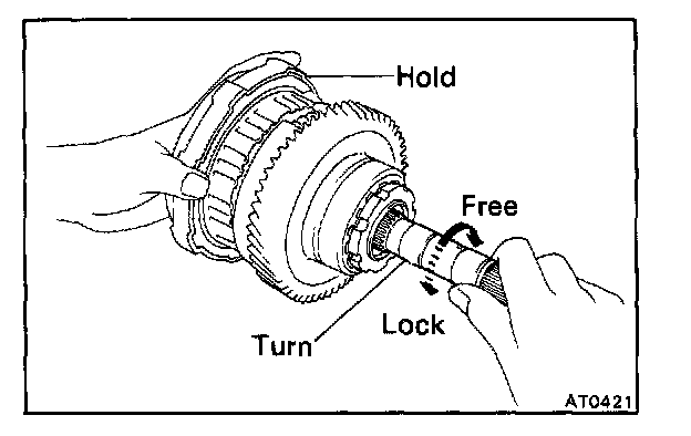 b. Hold the overdrive direct clutch and turn the intermediate shaft. The shaft should turn freely clockwise and should lock counterclockwise.