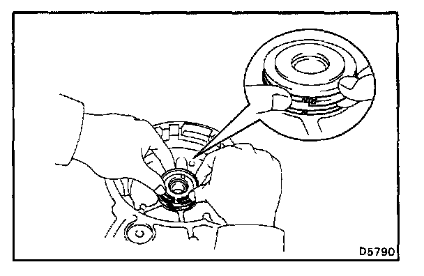 NOTE: Press in the bearing until the side surface of the inner race touches the shaft.