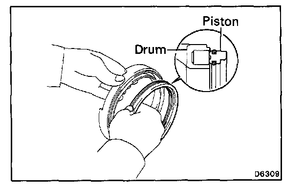 b. Press the piston into the drum, being careful not to damage the O-rings.
