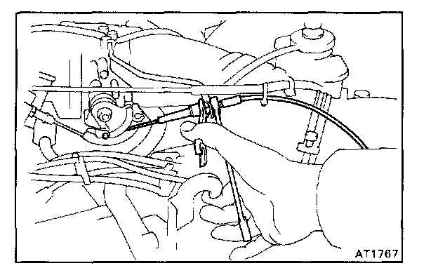 5. DISCONNECT THROTTLE CABLE FROM THROTTLE LINKAGE AND BRACKET