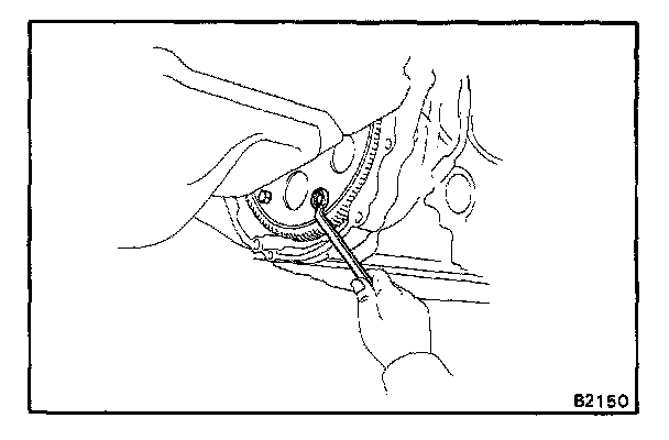 b. Hold the crankshaft pulley bolt with a wrench, remove the six bolts.