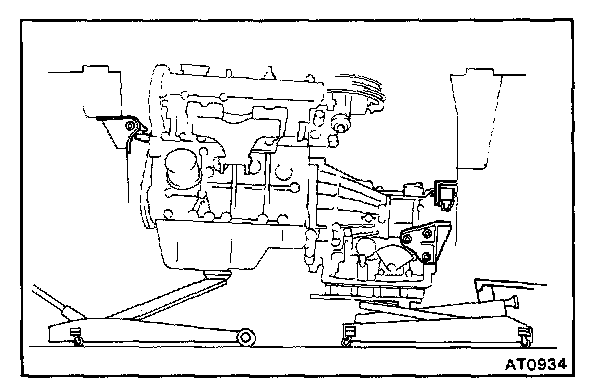 a. Hold the engine and transaxle with two jacks, or a chain block and jack.
