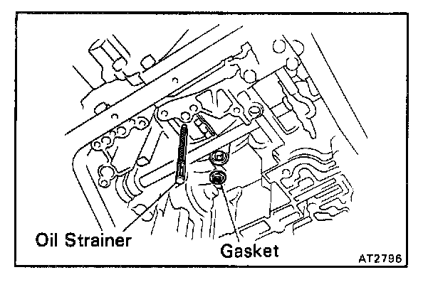 Remove the three bolts, and the oil strainer.