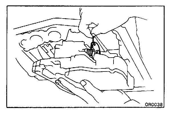 CAUTION: Be careful not to entangle the kick-down switch and solenoid wire.