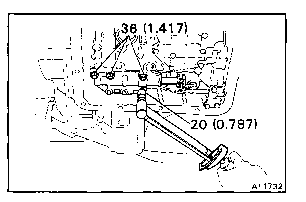 b. Check that the manual valve lever is in contact with the center of the roller at the tip of the detent spring.