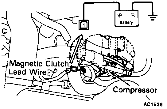 d. Connect the positive (+) lead from the battery to terminal 1, check that the magnetic clutch is energized.