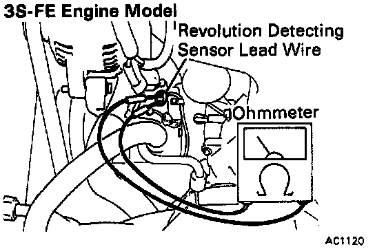 5. Check revolution detecting sensor. Using an ohmmeter, measure the resistance between two terminals of the sensor.