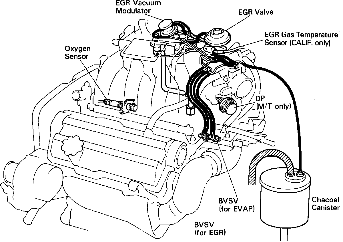 Bimetal Vacuum Switching Valve (BVSV): Front of engine