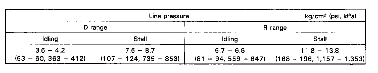 e. Press the accelerator pedal all the way down. Quickly read the highest line pressure when engine speed reaches stall speed.