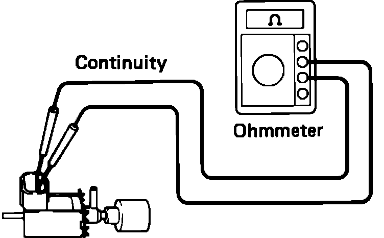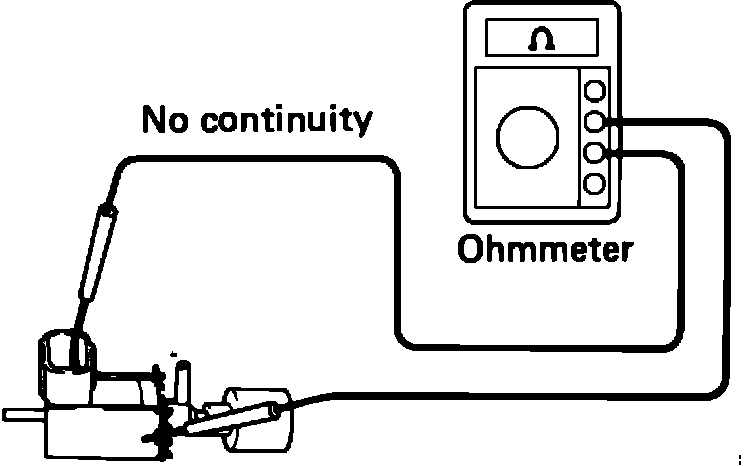 2. Using an ohmmeter, check for continuity between the terminals and the housing body. Fig. 77