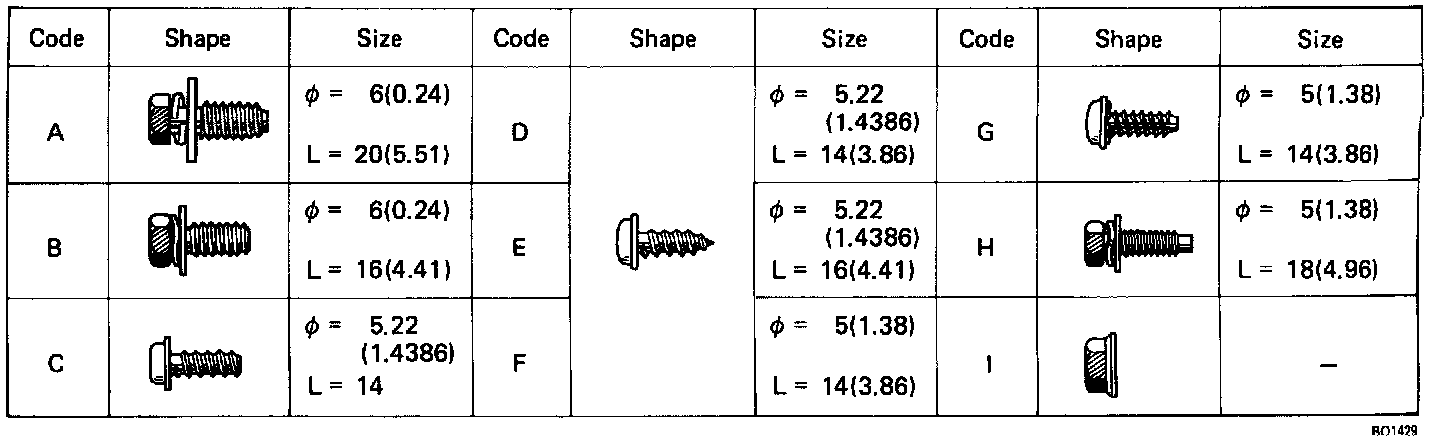 NOTE: Screws sizes in the above image are indicated by following the code below for removal and installation of the safety pad.