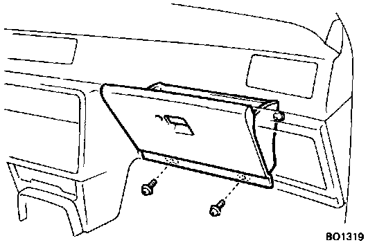 5. Remove two screws and the glove compartment door.