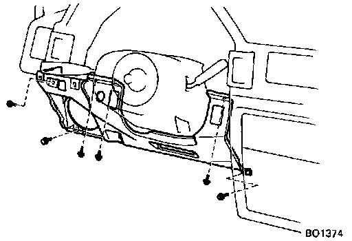 11. Remove five screws and bolt from the instrument panel finish lower panel, disconnect the connectors and remove the panel.