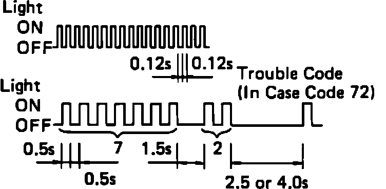 After performing the above test, bring the vehicle to a stop. The warning light will begin to blink the diagnostic codes. The diagnostic codes can be read by counting the number of times that the warning light flashes and the time between flashes. Codes are separated by a 2.5-4.0 second delay, the digits in the two digit code are .5 seconds each and are separated from each other by a 1.5 second delay.