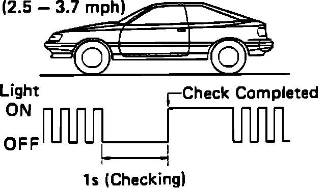 After performing the PRETEST PROCEDURE above, drive the vehicle at about 2.5-3.7 mph in a straight line. The warning light should turn on after a one second delay. If the warning light turns on while the vehicle is within the specified speed range, the check is completed.