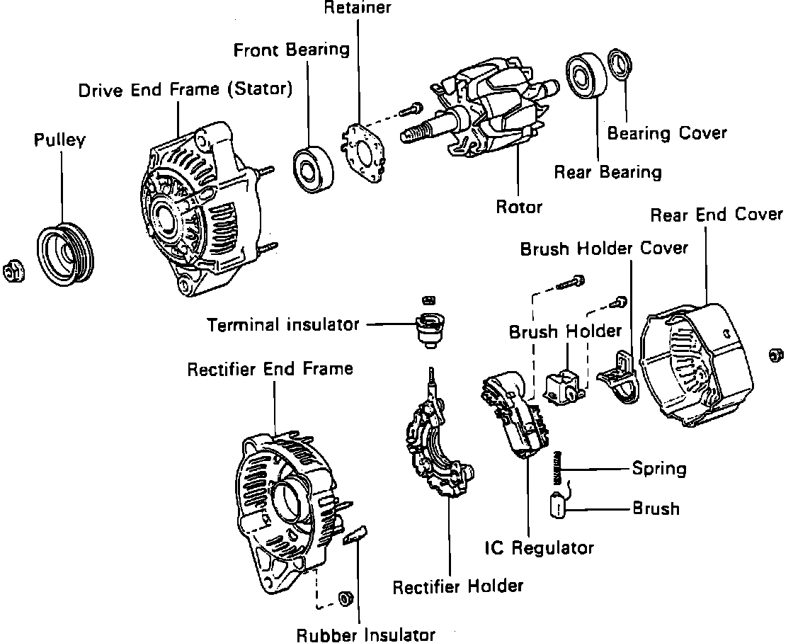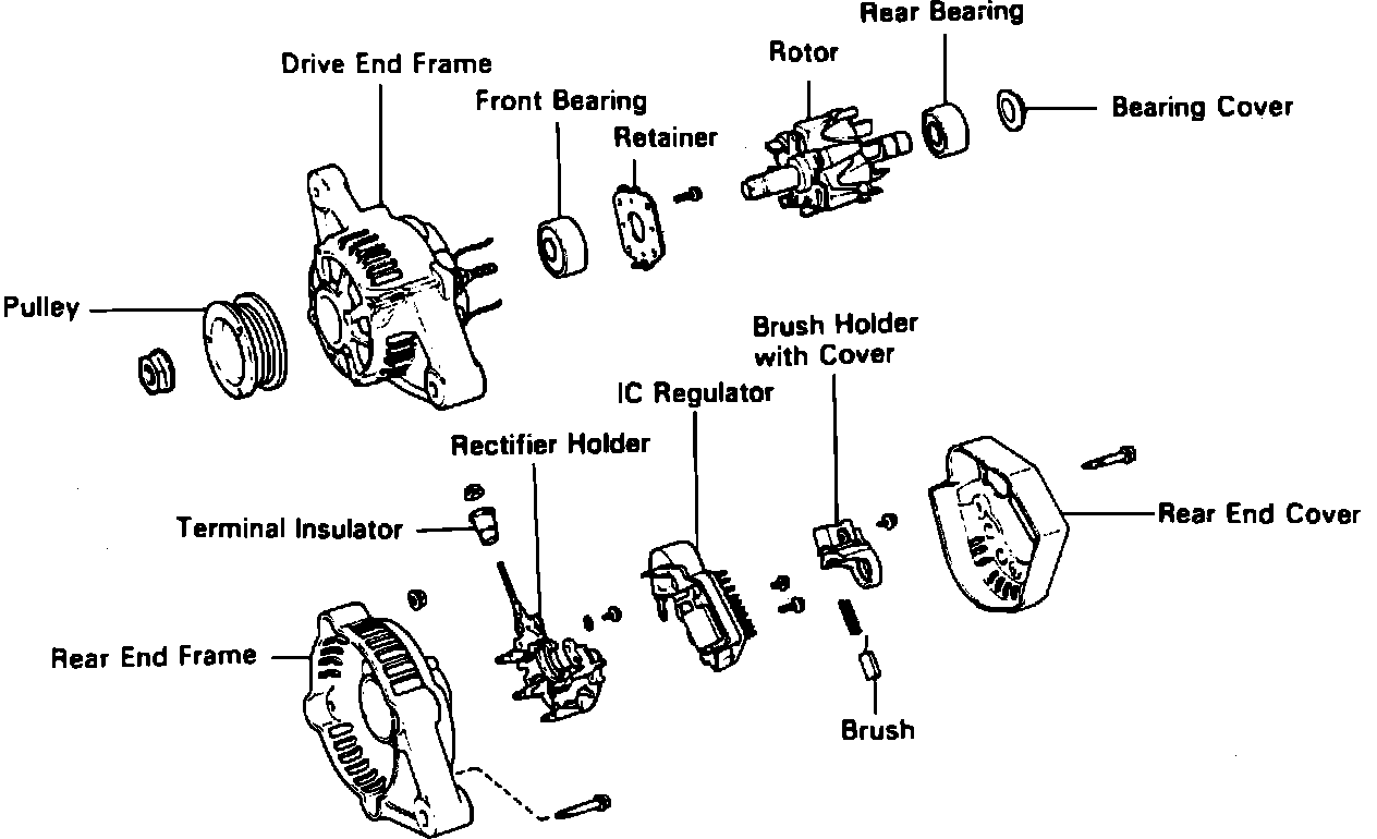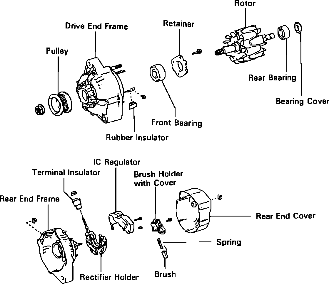 Fig. 1 Exploded View Of Alternator. Less IC Regulator: