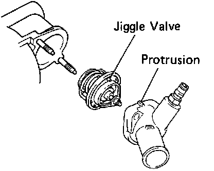 (b) Align the jiggle valve of the thermostat with protrusion of the water inlet housing and, insert the thermostat in the water inlet housing.