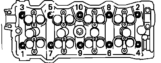 Fig. 7 Cylinder Head Bolt Loosening Sequence. 3S-FE: