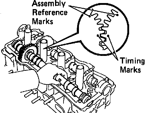 Fig. 10 Intake & Exhaust Camshaft Alignment. 3S-FE: