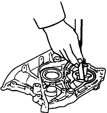 2. Clearance should be .0039-.0067 inch. If feeler gauge clearance obtained exceeds .0079 inch, replace oil pump rotor set and/or pump case.