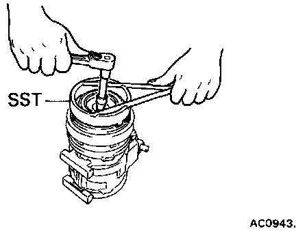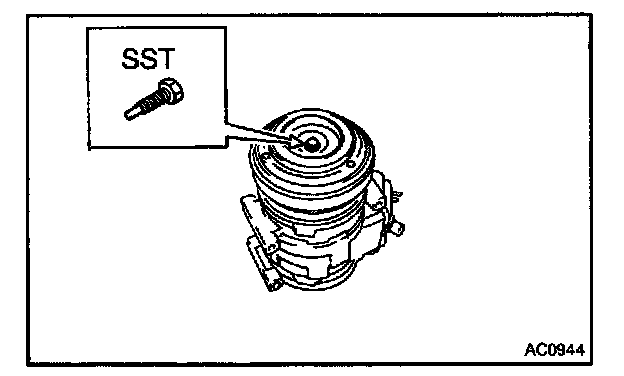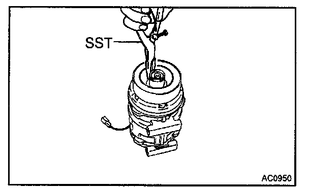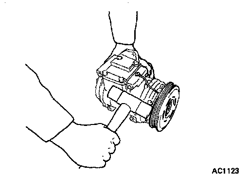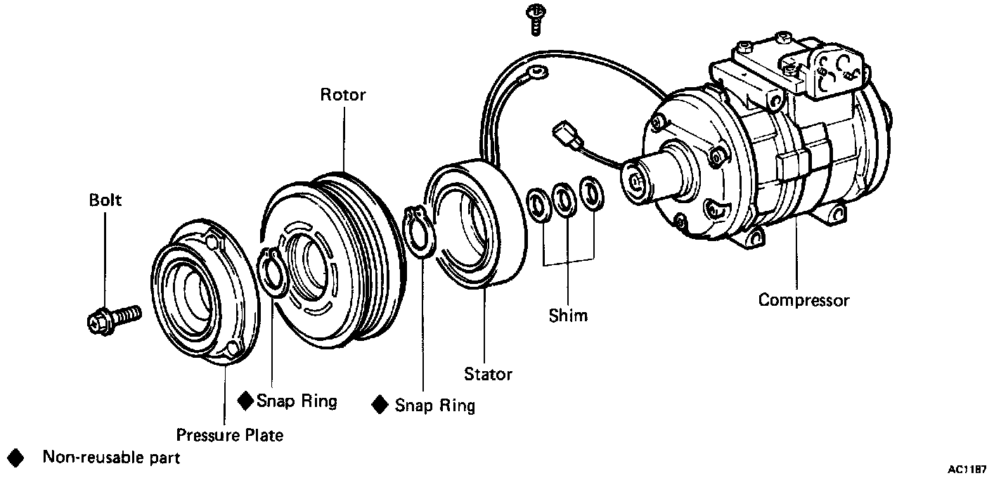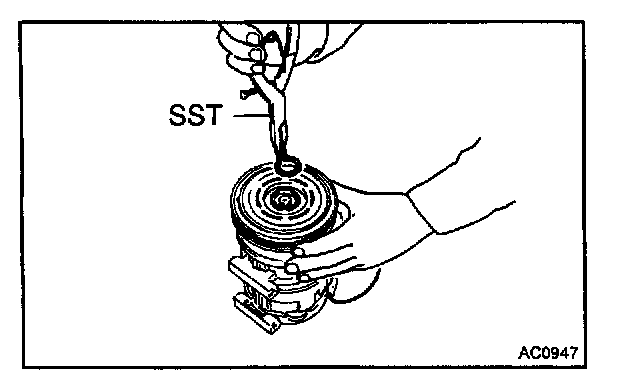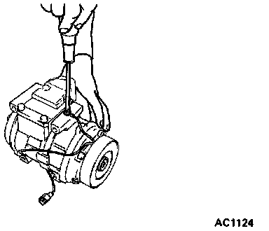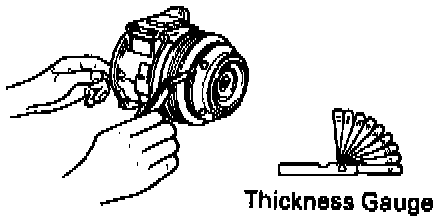 4. Check clearance of magnetic clutch. Check the clearance between the pressure plate and rotor using thickness gauge.