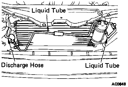 5. Disconnect discharge hose and liquid tube clamp from condenser inlet fitting.