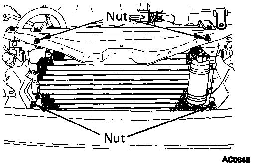 1. Install the four condenser nuts, making sure the rubber cushions fit on the mounting flanges correctly.