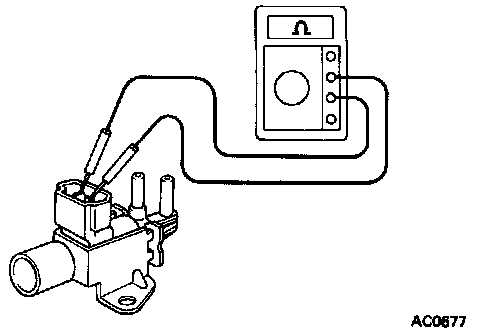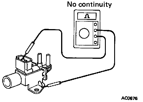 3. Check for short circuit, using an ohmmeter, check that there is no continuity between each terminal and the VSV body.