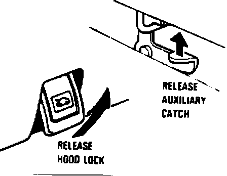 release lever under the dash. The hood will spring up slightly. In front of the vehicle, press up on the auxiliary catch lever and lift the hood.