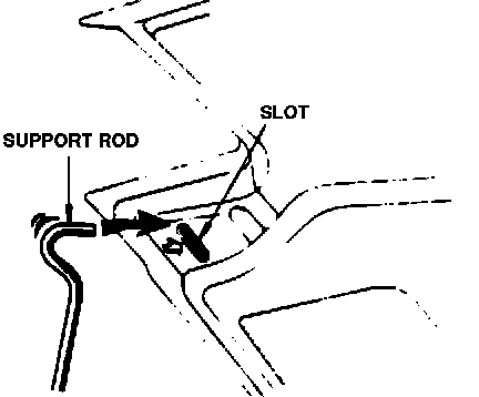 After inserting the support rod into the slot, make sure the rod supports the hood securely.