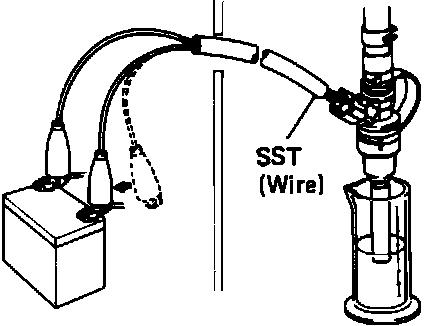 7. Connect a SST jumper wire to the injector terminals and apply battery current to the injector for 15 seconds.