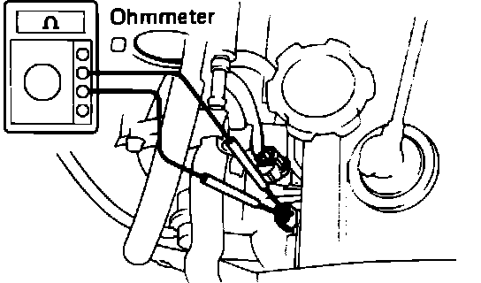 7. Using an Ohmmeter, measure the resistance across the injector terminals.