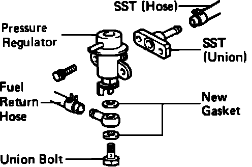 3. Attach the Fuel Pressure Regulator to the vehicle fuel return line with SST.