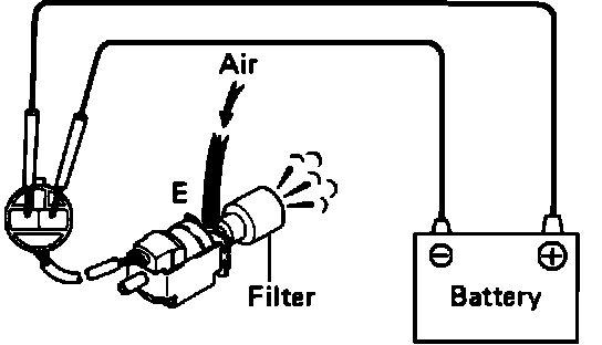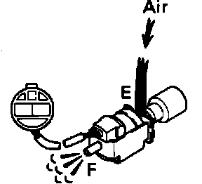 6. Connect battery current to the VSV terminals. Blow through pipe E and ensure that air flows through filter and not pipe F.