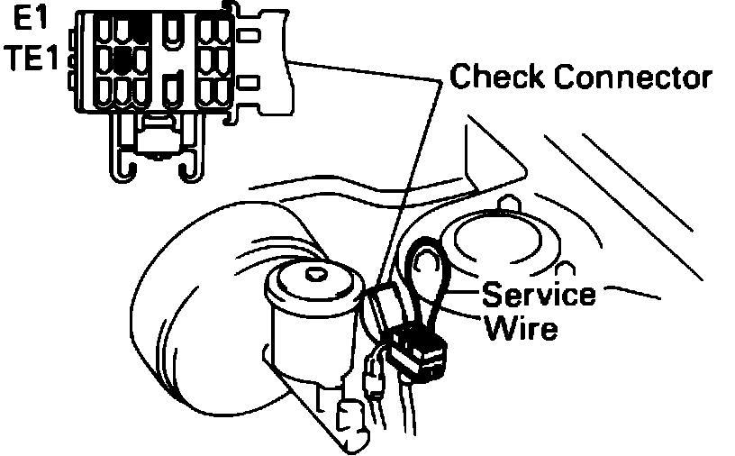 3. Using a service wire, connect terminals TE1 and E1 of the check connector. Fig. 41a