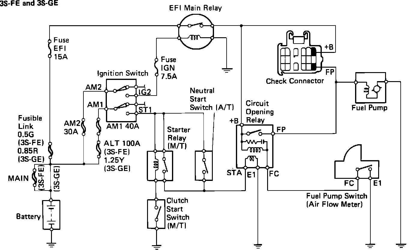 3S-FE AND 3S-GE ENGINESEFI Main Relay Circuit Schematic: