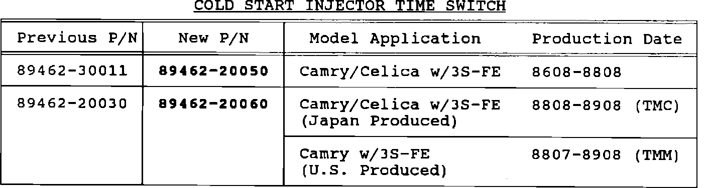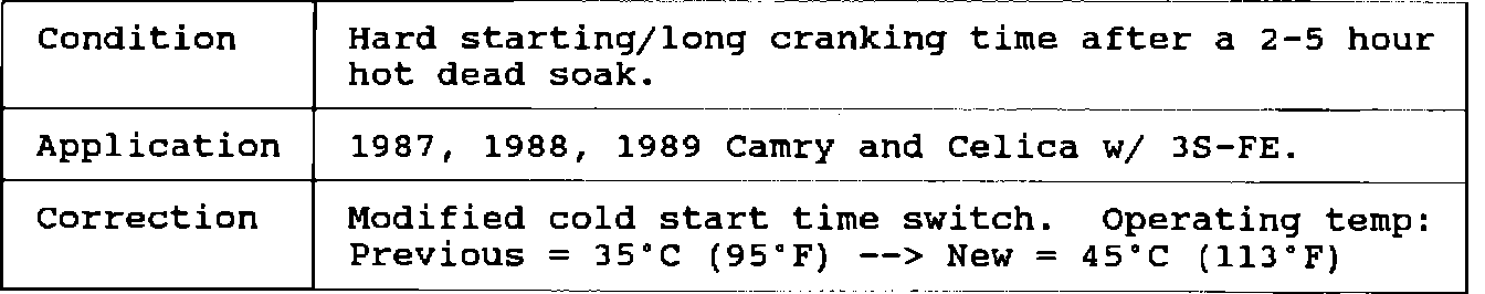 1990 models have a TCCS ECU change which addresses this condition, and will not benefit from cold start time switch replacement.