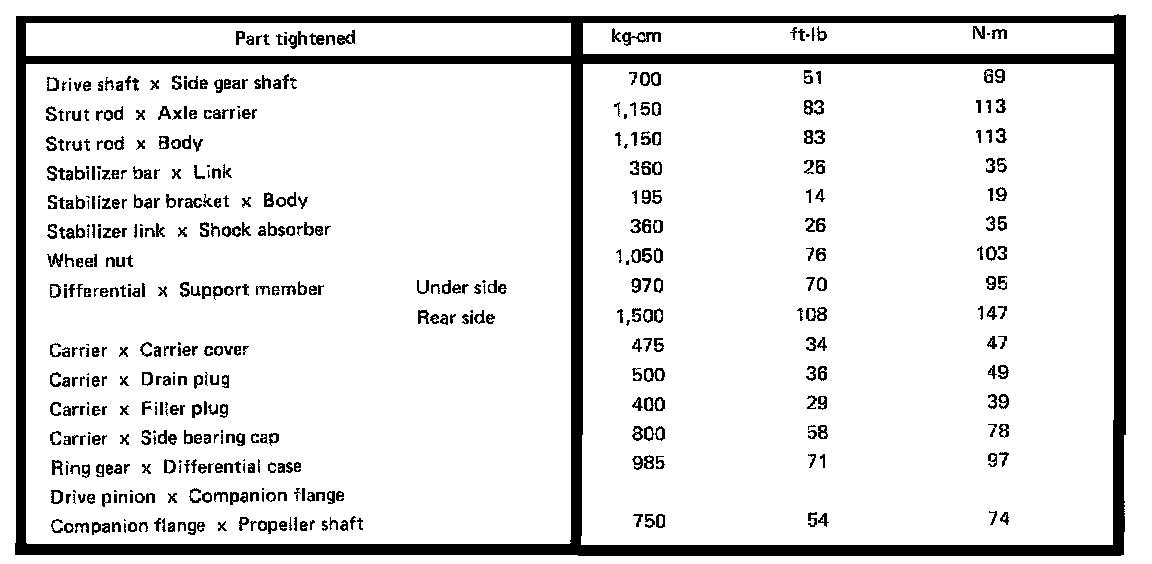 Rear Differential, Carrier Torque: