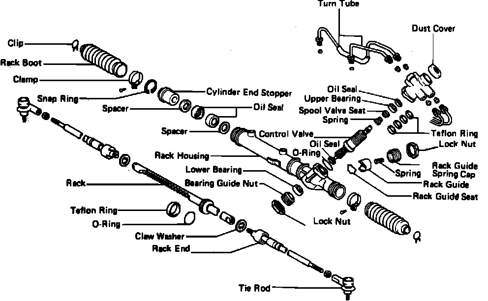Fig. 7 Exploded View Of Rack & Pinion Power Steering Gear. Celica: