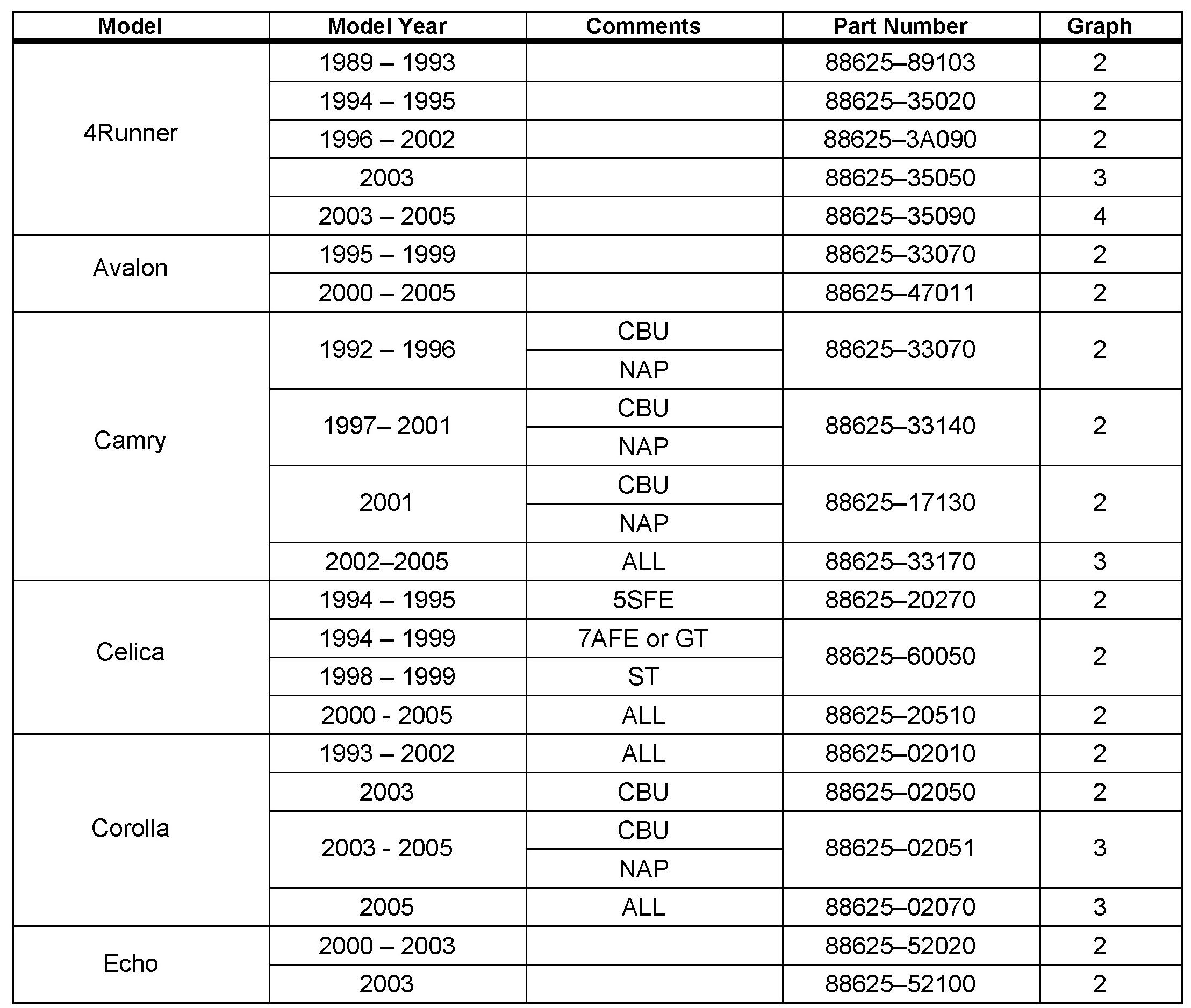 - All 1989 - Current model year Toyota vehicles.