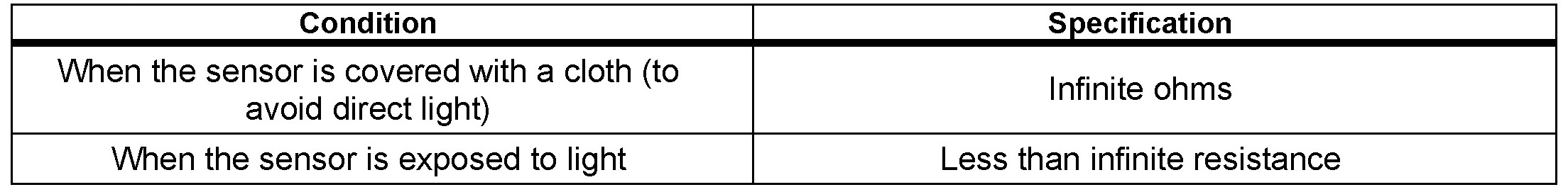 b. Measure the resistance between terminals 2 and 3 of the solar sensor under the following conditions:
