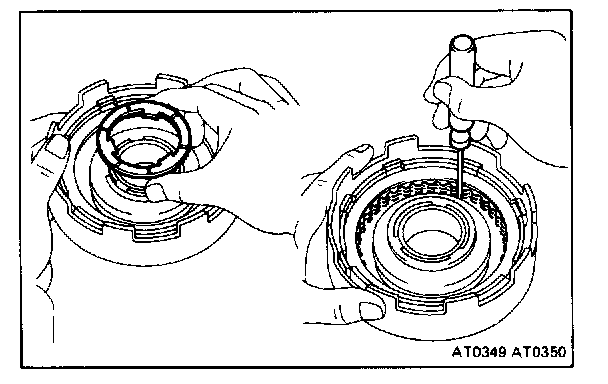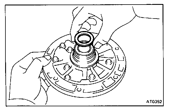 CAUTION: Do not push on the oil pump strongly or the oil seal ring will stick to the direct clutch drum.