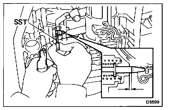 b. Check that the manual valve lever is touching the center of the detent spring tip roller.