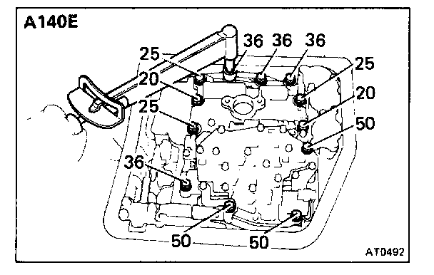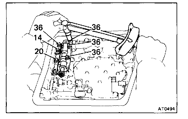 45. PLACE MANUAL VALVE AND BODY ON TRANSMISSION