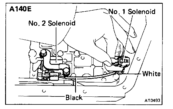 b. Connect the No.2 solenoid connector. (black and longer wire)